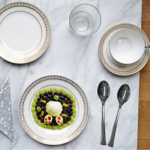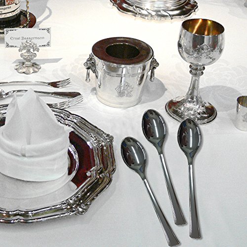 HIGH QUALITY SPOONS WITH ENDLESS SHINE, NO AFTERTASTE, COLOR IS CONSISTENT. Your guest will not see a difference between real silver china and spoons when served with these elegant silver spoons.