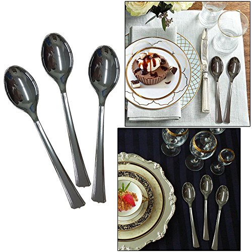 96 Mini Silver Plastic Spoons, 4.5 Inches, No After Tastes, Silver Color Is Consistent, Disposable Silver Flatware. Perfect For Desserts And Appetizers. By Premium Disposables.