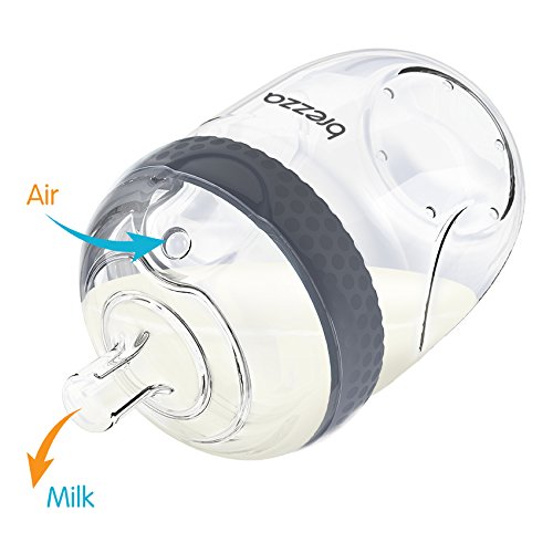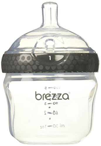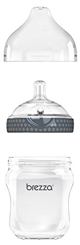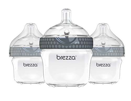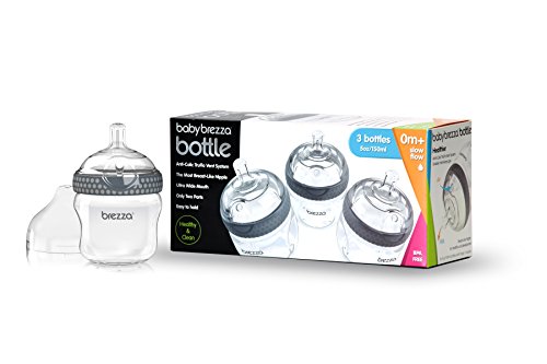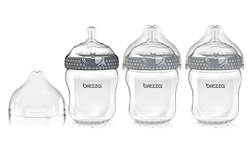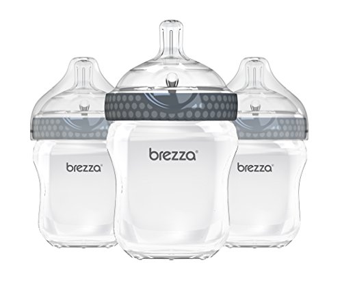 Baby Brezza Two Piece Natural Baby Bottle with Lid - Ergonomic, Wide Neck Design Makes it the Easiest to Clean - Modern Look - Anti-Colic - BPA Free Plastic - Grey – 5oz – 3 Bottles