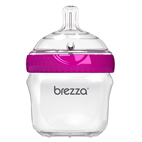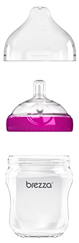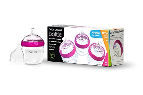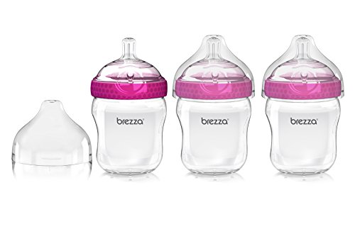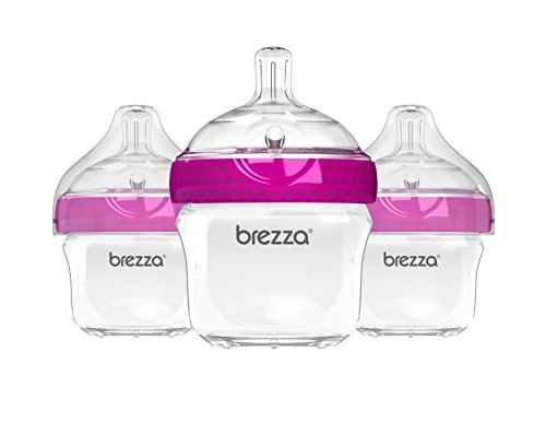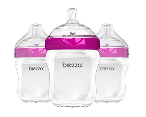 Baby Brezza Two Piece Natural Baby Bottle with Lid - Ergonomic, Wide Neck Design Makes it the Easiest to Clean - Modern Look - Anti-Colic - BPA Free Plastic - Pink – 5 Ounce Size – 3 Pack of Bottles