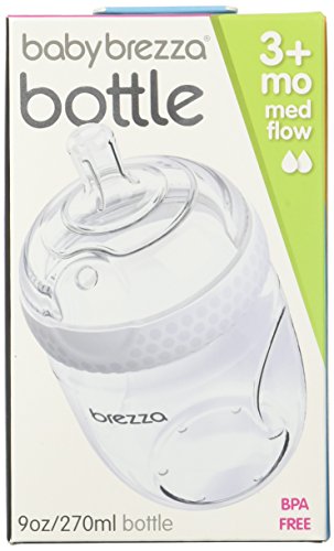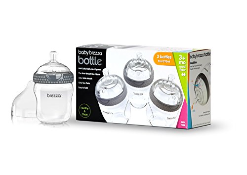 Baby Brezza Two Piece Natural Baby Bottle with Lid - Ergonomic, Wide Neck Design Makes it the Easiest to Clean - Modern Look - Anti-Colic - BPA Free Plastic - Grey - 9 Ounce - 3 Bottles