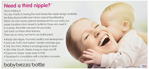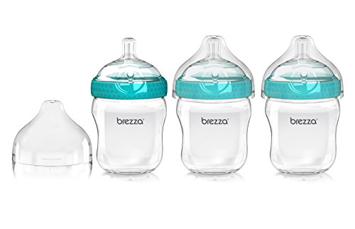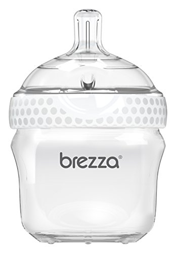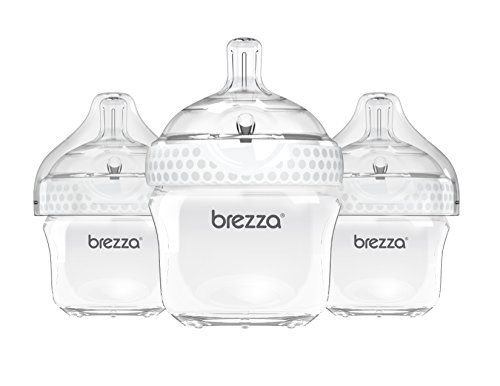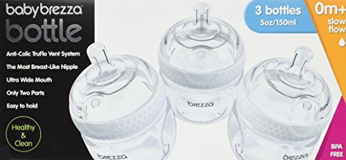 Baby Brezza Two Piece Natural Baby Bottle with Lid - Ergonomic, Wide Neck Design Makes it the Easiest to Clean - Modern Look - Anti-Colic - BPA Free Plastic - White - 5 Ounce - 3 Bottles