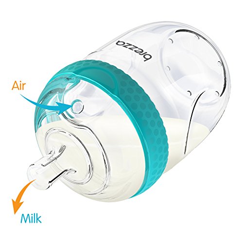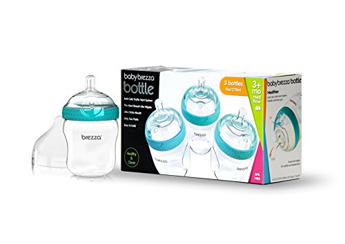 Baby Brezza BPA Free, Anti-Colic Baby Bottle with Lid - Large, 2-Piece, Wide Neck Design - Feeding Bottles for Boys, Girls & Newborns - Blue Bottle - 9 Ounce - 3 Bottles