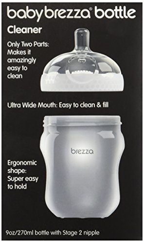 Baby Brezza Two Piece Natural Baby Bottle with Lid - Ergonomic, Wide Neck Design Makes it the Easiest to Clean - Modern Look - Anti-Colic - BPA Free Plastic - White - 9oz - 1 Bottle