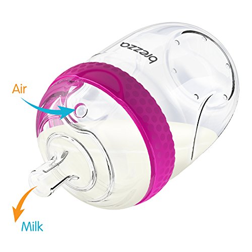 Baby Brezza Two Piece Natural Baby Bottle with Lid - Ergonomic, Wide Neck Design Makes it the Easiest to Clean - Modern Look - Anti-Colic - BPA Free Plastic - Pink - 9 Ounce - 3 Bottles