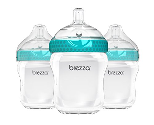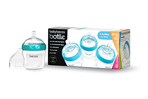 Baby Brezza Two Piece Natural Baby Bottle with Lid - Ergonomic, Wide Neck Design Makes it the Easiest to Clean - Modern Look - Anti-Colic - BPA Free Plastic – Blue – 5 Ounce Size – 3 Pack of Bottles