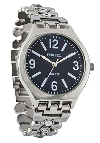 Women's Watches by Ferenzi - Classic Silver And Navy Rhinestones Bracelet Watch - Make Every Second Count - FZ12002