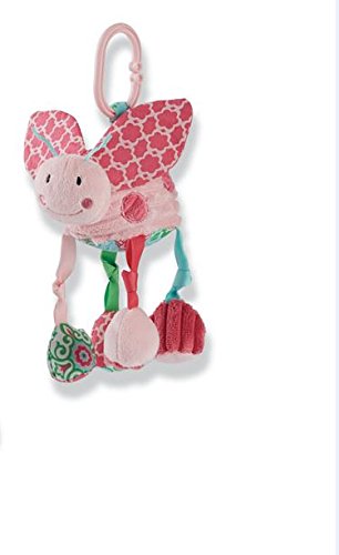 Soft ladybug stroller toy features soft chenille, grosgrain and printed cotton accents.