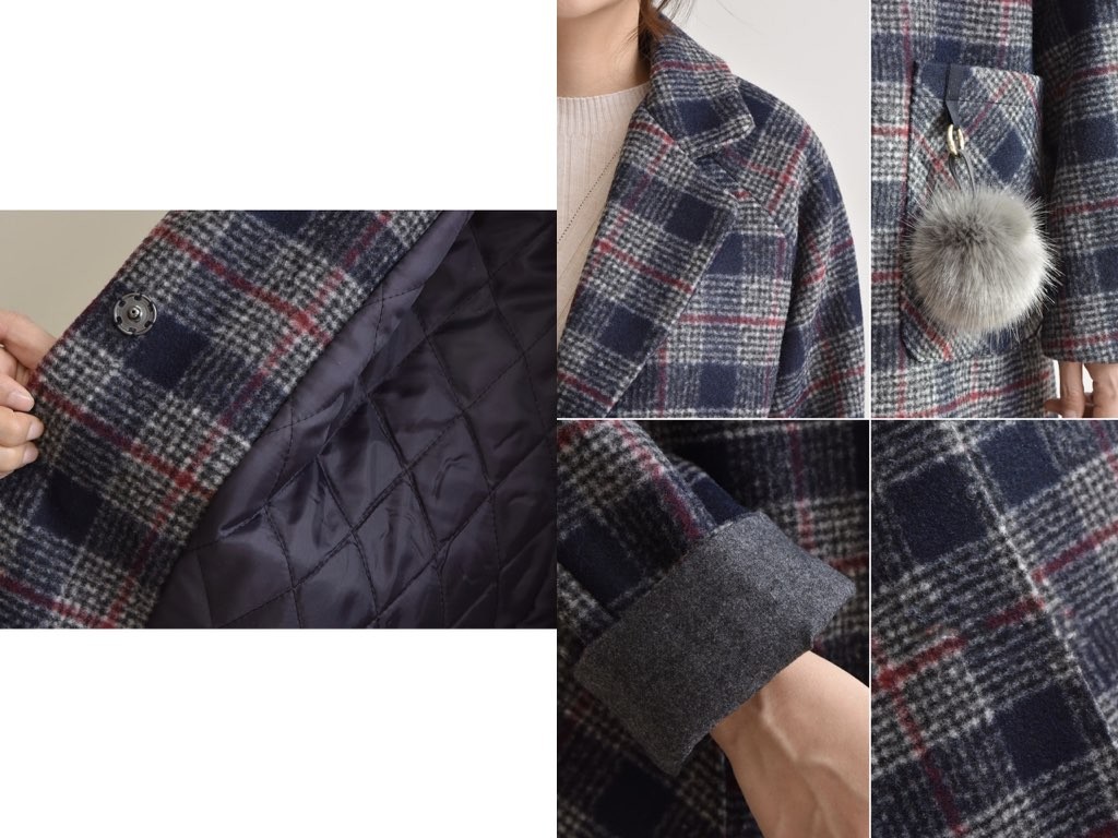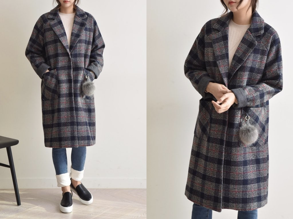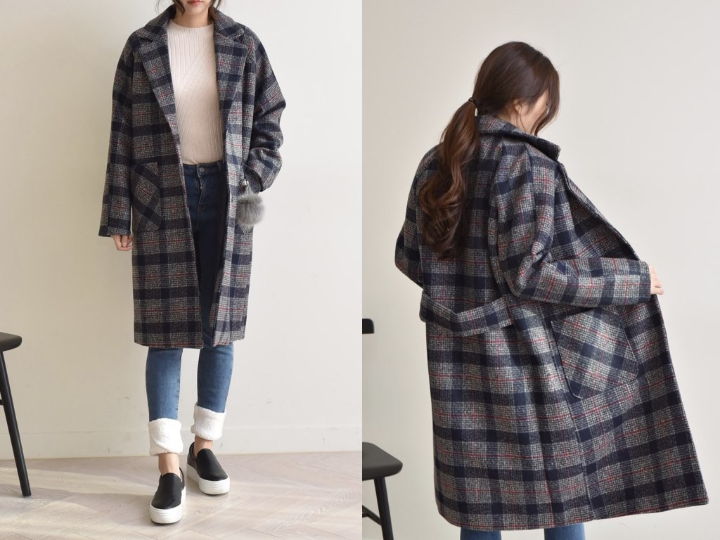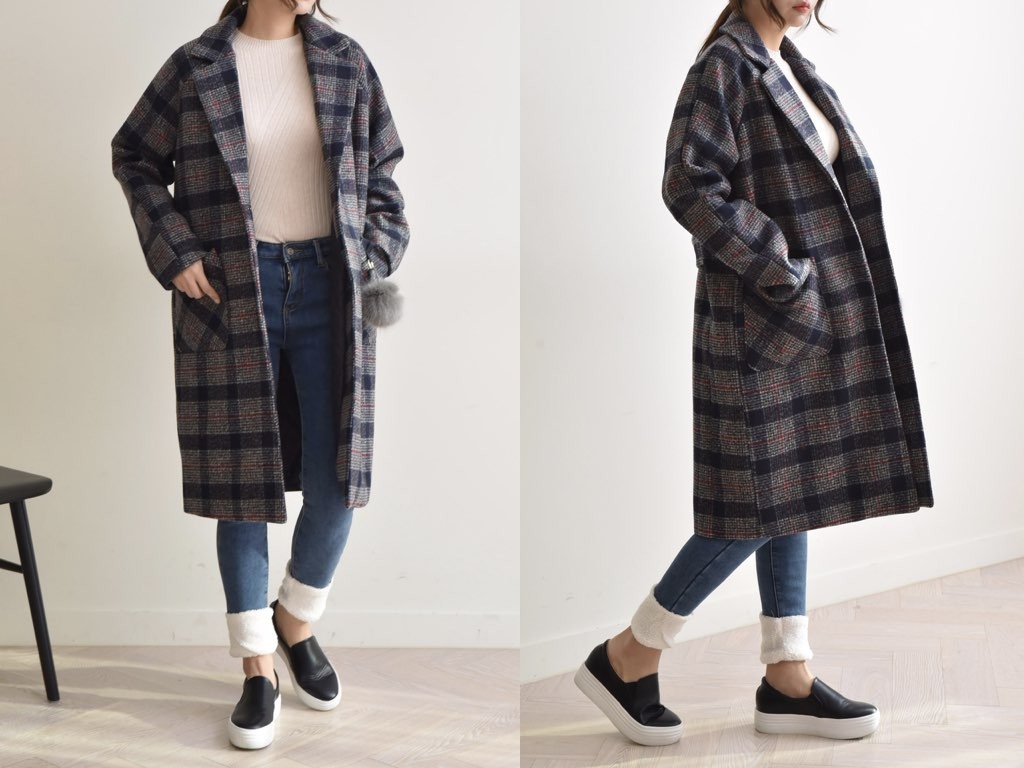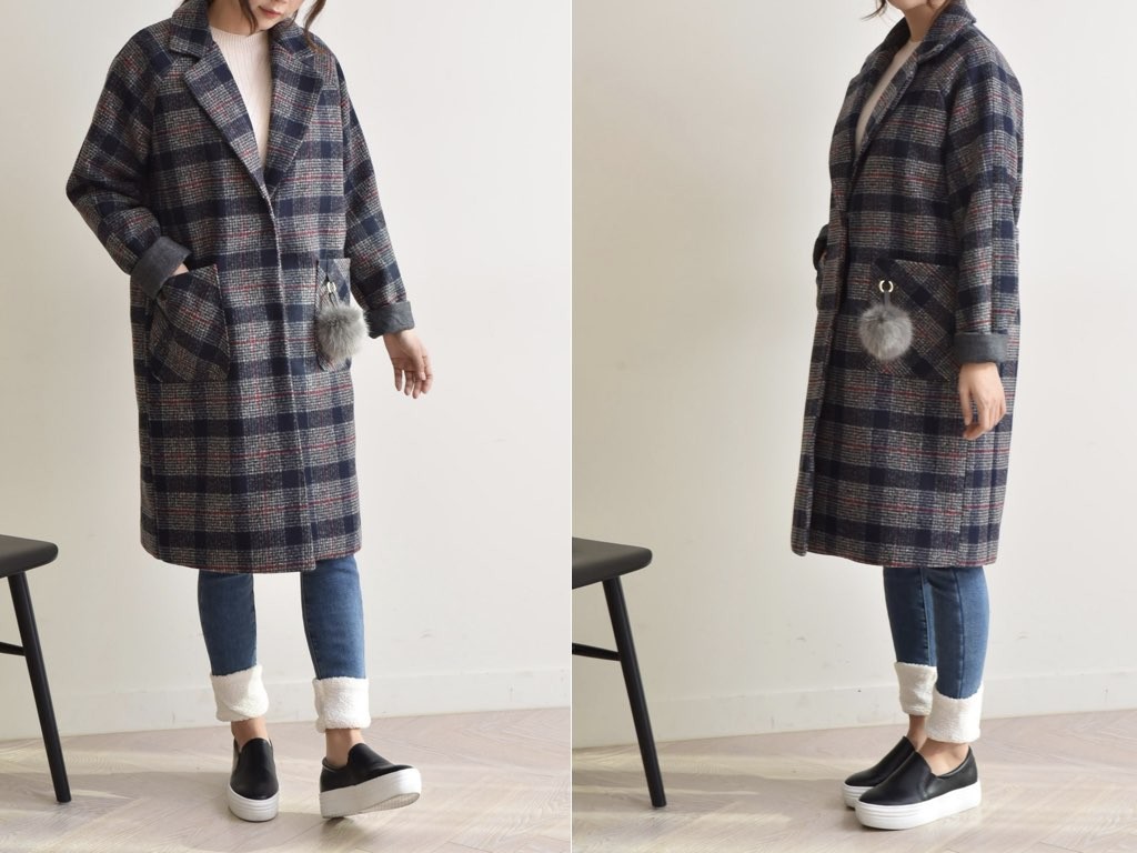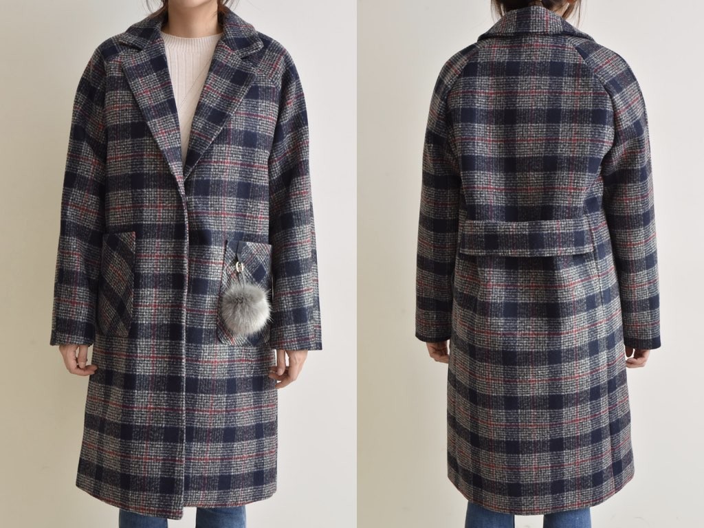 チェック柄のチェウターコートです。あたたかみのある「チェック柄」は、秋冬にオススメです。チェスターコートは、コーディネートの仕上げに取り入れれば、カジュアルコーデもとってもおしゃれにキマります。チェスターコートは、パンツスタイルと相性の良いイメージがありますが、スカートやワンピースとも相性の良く使いやすいアイテムです。1.基本情報色:チェック柄(ネイビー系)サイズ:Free素材:ウール混製造国:Korea2.サイズ情報肩幅:ナグランデザイン身幅(胸断面):55cm腕の長さ:71cm着丈(前):99cm(サイズは計る方法に応じて±2〜3cmの誤差があります。ご了承お願い致します)モデル着用サイズ:F※着用モデル(163cm、体重47kg、足のサイズ24.5cm)3.その他の情報厚み:厚い透け感:なし伸縮性:なし裏地:あり(厚手でとても暖かいです)洗濯方法:ドライ(クリーニング)[注意事項]お取り寄せ商品は、海外より仕入れるため納品まで約10日前後いただきます。また店舗でも販売しており、在庫切れになる場合もございます。ご了承お願い致します。