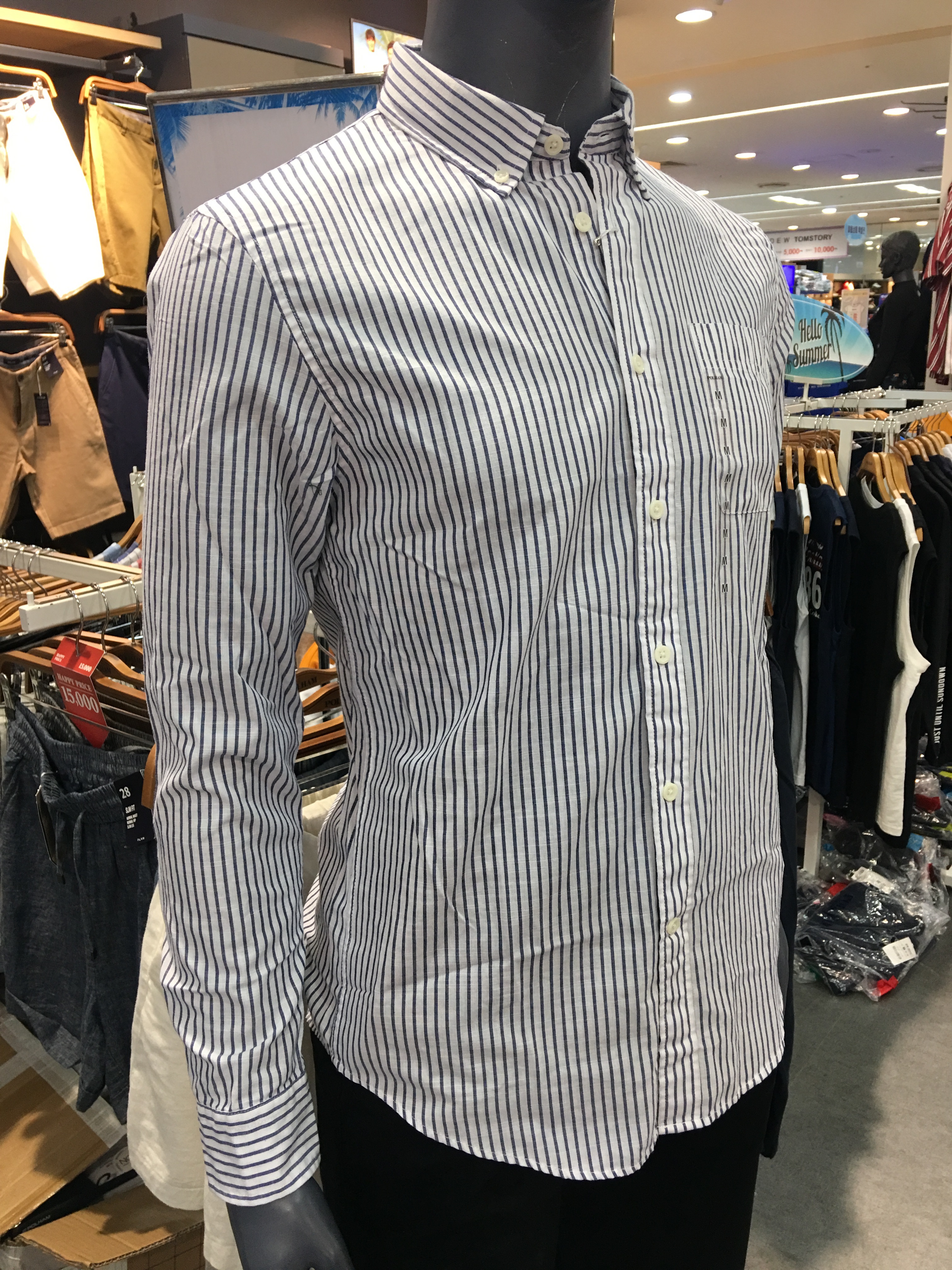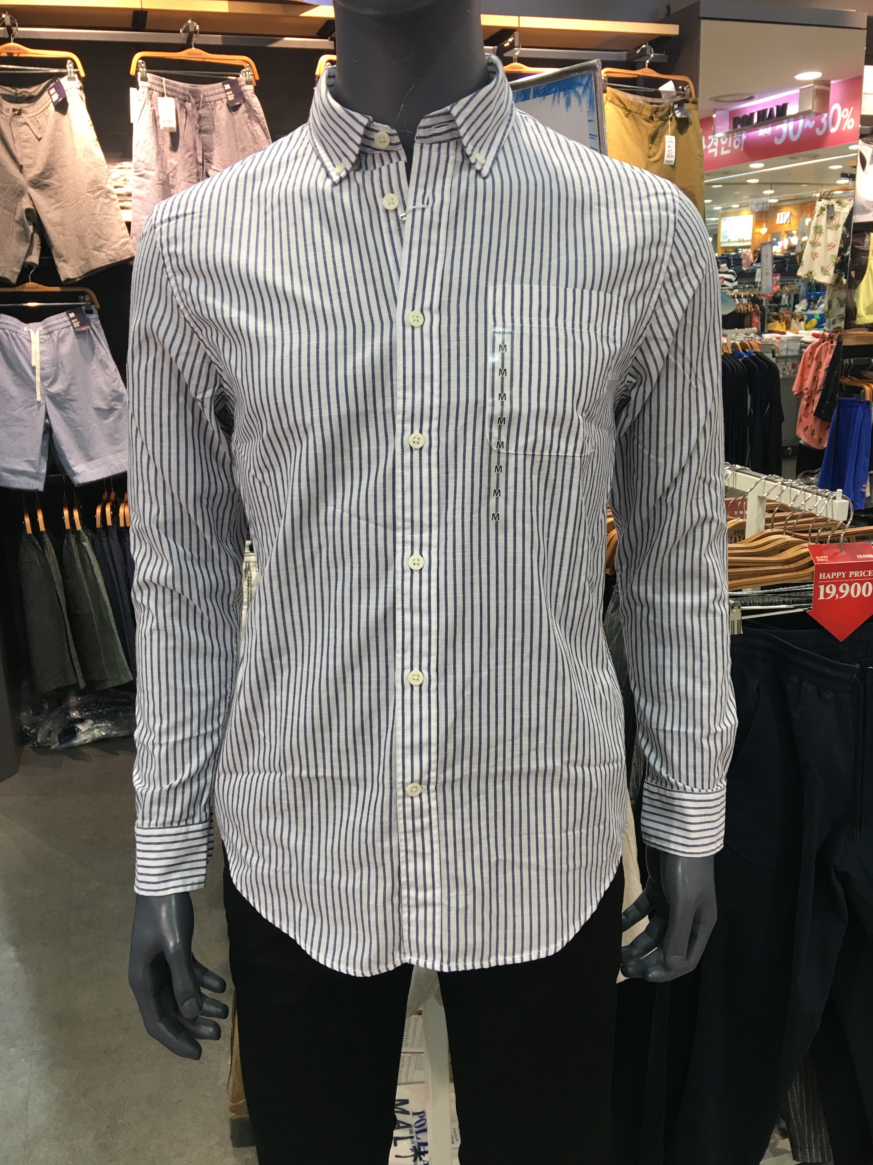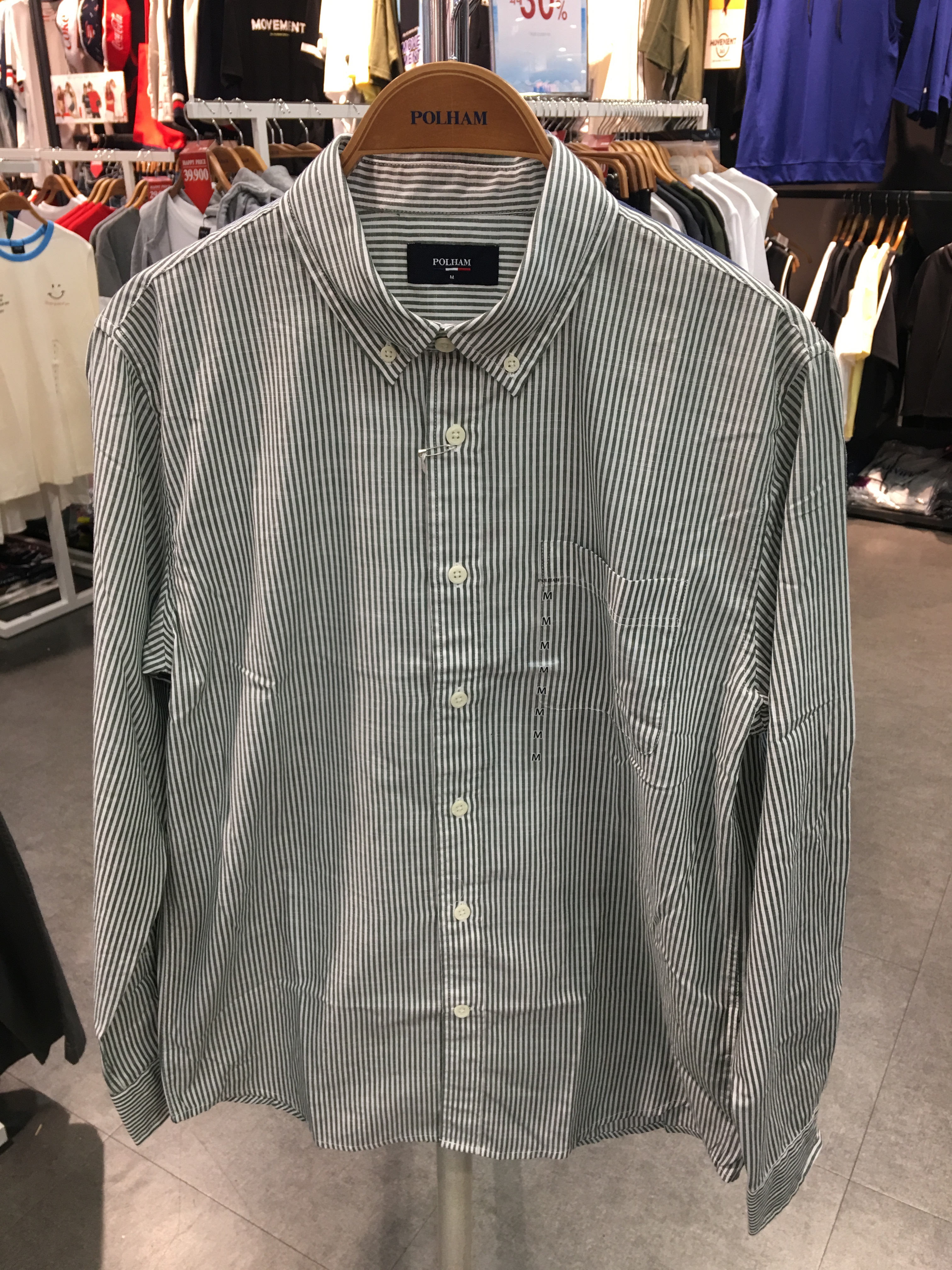 면 60%폴리에스터 40% 혼용의 남성용 셔츠입니다. 간절기 셔츠로 봄과 가을에 입기 좋은 적당한 두께감으로 나왔으며, 각 컬러마다 굵고 얇은 스트라이프 패턴과, 체크패턴으로 포인트를 주었으며, 유행없는 기본스타일로,치노와 데님 상관없이 코디 하기 좋은 제품입니다.