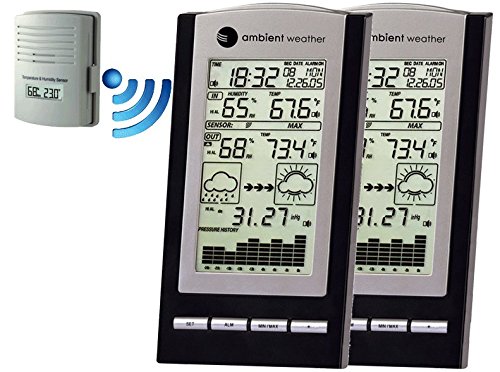 -. Binding : Misc. -. Brand : Ambient Weather -. Color : Black -. EAN : 0857450002524 -. Feature : Includes two display consoles that simultaneously reads the data from a single remote sensor so you can view data from two different locations! / The display is simple and easy to read. The remote includes mounting hole for hanging outside or on a wall. / Includes 1 year Ambient Weather warranty. -. Label : Ambient Weather -. Manufacturer : Ambient Weather -. Model : WS-1171-2 -. MPN : WS-1171-2-KIT -. PackageQuantity : 1 -. PartNumber : WS-1171-2-KIT -. ProductGroup : Home -. ProductTypeName : HOME -. Publisher : Ambient Weather -. Studio : Ambient Weather -. Title : Ambient Weather WS-1171-2-KIT Dual Zone Wireless Advanced Weather Station with Temperature, Dew Point, Humidity with Calibration and Barometer -. UPC : 857450002524 -. Warranty : One year parts and labor