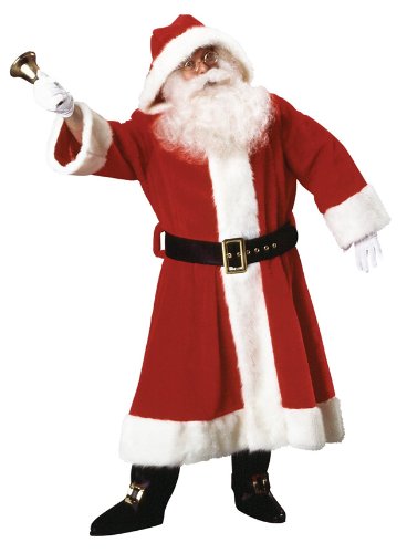 -. Binding : Apparel -. Brand : Rubie's -. Department : mens -. Feature : Plush Santa Coat with an old-time feel / Long red hooded jacket trimmed in rich white faux fur / Belt and boot-tops included; bell available separately / Review Rubie's size chart before making a buying decision, Santa suits do run large / Rubie's Costume offers Santa beards, wigs, and costumes for every budget - from value to deluxe -. Genre : Holiday - Christmas -. IsAdultProduct : 0 -. Label : Rubies Costumes - Apparel -. Manufacturer : Rubies Costumes - Apparel -. ProductGroup : Apparel -. ProductTypeName : ADULT_COSTUME -. Publisher : Rubies Costumes - Apparel -. Studio : Rubies Costumes - Apparel -. Title : Rubie's Plush Old-Time Santa Suit With Hood Costume