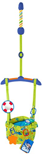 -. Feature : Sturdy door frame clamp provides a secure fit into doorways / Padded seat ring for baby's comfort / Includes 4 repositionable ocean themed toys: rattle, mirror for self-discovery, real-world imagery flash cards, and tether / Strap allows adjustment according to baby's height / Lightweight frame allows for easy portability and storage / Includes 4 repositionable ocean themed toys: rattle, mirror for self-discovery, real-world imagery flash cards, and teether / Lightweight frame allows for easy portability & storage
