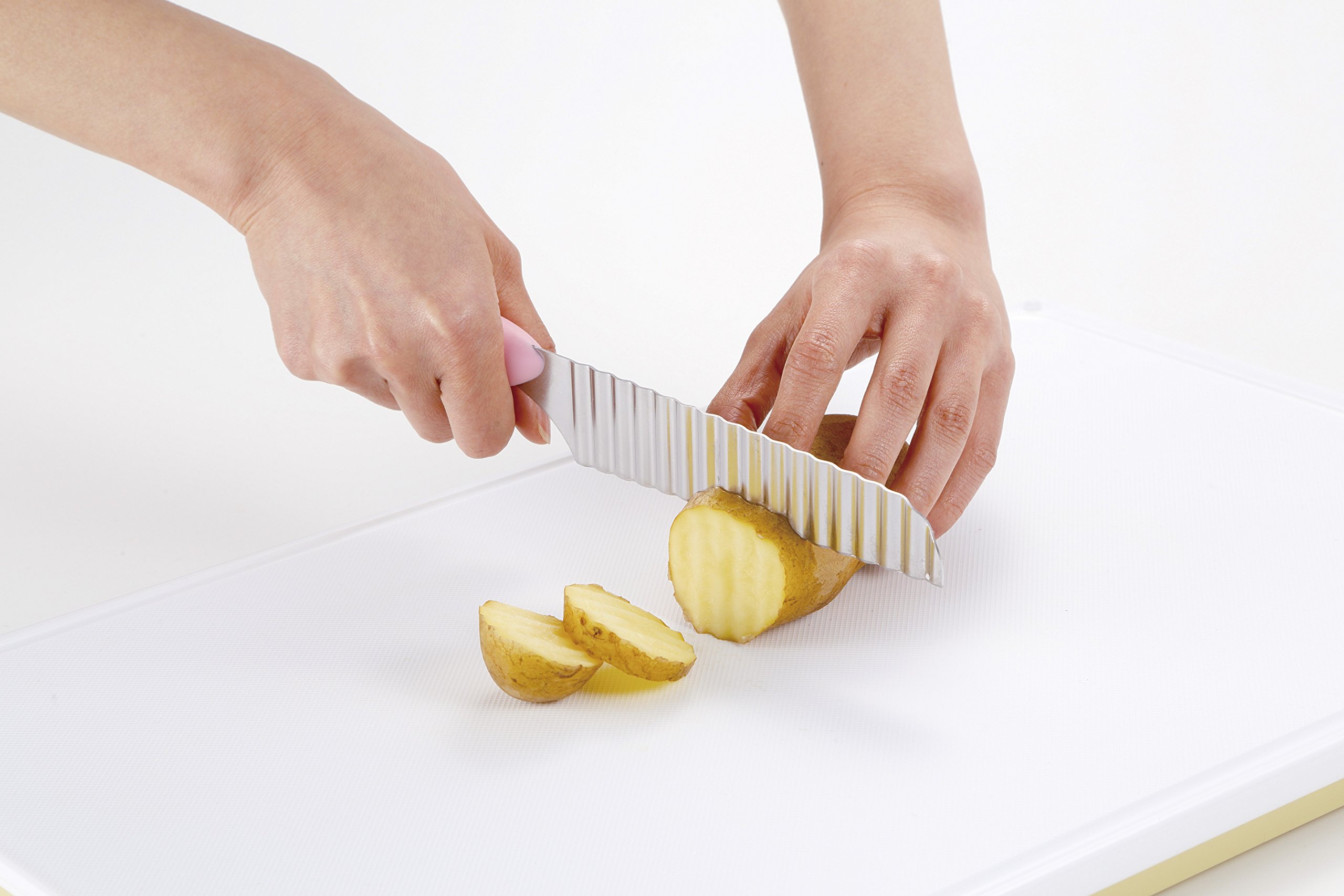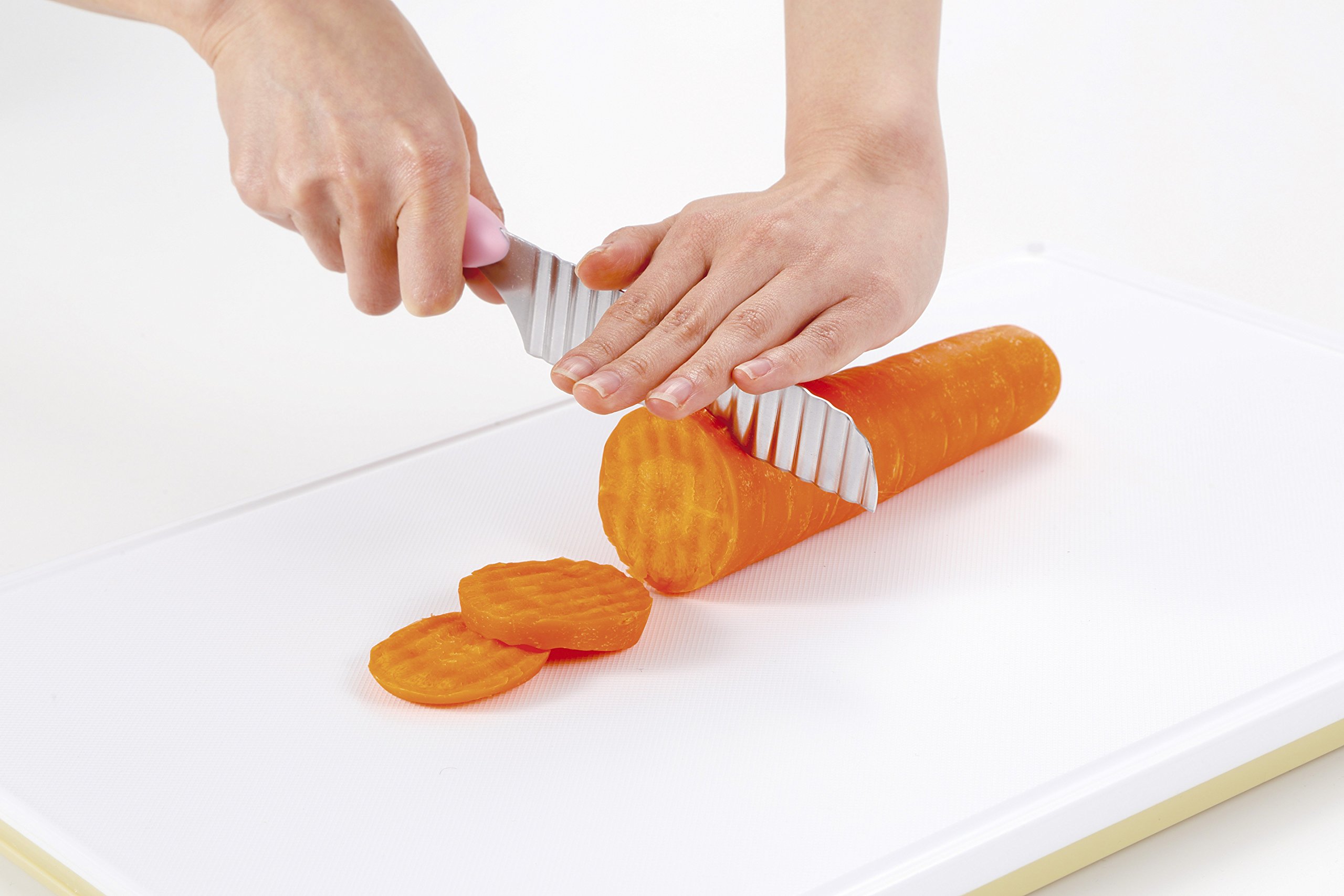Attaching carrot, potatoes, etc. with wavy blade to jagged the surface of food materials such as vegetables and cheese
