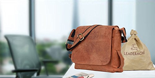 -. Brand : LEADERACHI -. Department : unisex-adult -. Feature : 100% GENUINE HUNTER VINTAGE LEATHER: Crafted from tough, 100% Semi Full-Grain Boot Leather, which takes hits well and looks even better with age. Full-Grain Leather is the top layer of the cow skin which is the most expensive and toughest part. The distinguishing feature of this leather is that the leather may have wrinkles, scratches that are inherent characteristics. / CRAFTMANSHIP, STICHES AND PARTS: Our Products are handmade by Professionally Skilled Craftsmen, because of which the bags have best finishing in its class. Brass/ Metal Fitting Buckles and Holders are Internally Lined with Strong Green Canvas make it Durable and Long Lasting. Every stress point on this bag is double-stitched and riveted or reinforced with hidden nylon strapping. / PERFECT FOR ANY SITUATION: Looks great in the courtroom, boardroom, on worldwide travel. We have received countless positive testimonials from company executives, lawyers, military personnel and college students who love their classic messenger briefcase bag. / FEATURES AND COMPARTMENTS: 12" Tall x 12" Wide x 3" Deep with 1 large main compartment sealed by a leather cover with magnet closure, 1 small compartment in front of the spacious main compartment, sealed by the leather cover with magnet closure, 1 smaller zip pocket on the inside, 1 zip pocket on the back, 2 slip compartments within the main compartment, perfect for cell phone and wallet/purse -. Model : HALEATHERS204201-$P -. ProductGroup : Apparel -. ProductTypeName : LAGE -. Title : Leaderachi - 100% Pure Genuine Real Vintage Hunter Buffalo Leather Handmade Unisex Crossover Shoulder Messenger Bag ["VARESE"]