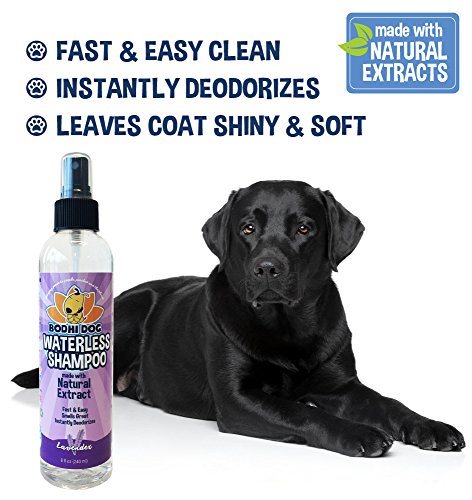 - LAVENDER FRESH SCENT: A wonderful fresh aroma makes this dry bath a pleasant experience for you and your pet! Our waterless shampoo has a light lavender scent that leaves your pet smelling fresh for days. It is perfect to freshen up your pet in between baths or trips to the groomer. Our formula is not harsh on your hands or your pet. This spray can also be used to freshen up bedding, car interiors, upholstery, or anywhere pet odors linger.