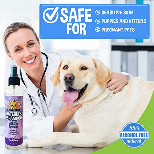- FORMULATED FOR SENSITIVE SKIN: Our dry pet shampoo is extremely gentle making it an excellent shampoo for animals with allergies and other sensitivities. Our all natural water-less shampoo spray is 100% detergent and alcohol free and 100% non-toxic. Its a safe alternative to other cleansers that contain harsh chemicals. Our hypoallergenic pet shampoo does NOT CONTAIN parabens, sulphates, SLS or stripping Ethyl alcohol.