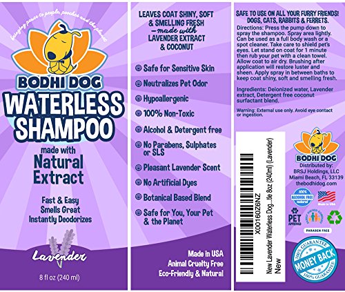 - PROFESSIONAL GRADE QUALITY: Our Lavender Waterless Shampoo offers safe professional quality for dogs, cats, puppies, kittens, ferrets, guinea pigs, rabbits and horses of all ages with normal or sensitive skin. Our dry shampoo is suited for all types of fur, leaving coats glossy and soft! We stand behind the quality of our products with a 100% SATISFACTION MONEY BACK GUARANTEE.