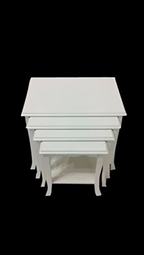 -. Feature : Set of 4 Nesting Tables with 4 Different Sizes / Transitional Style, Glossy White Finish / Materials: Solid Beechwood, MDF, Veneer / Stackable & Easy to Carry / No Assembly Required