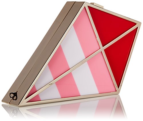 This unique Kate Spade New York hardshell clutch is crafted to resemble a striped kite. Polished push-lock closure. Unlined interior with optional wrist strap. Dust bag included.