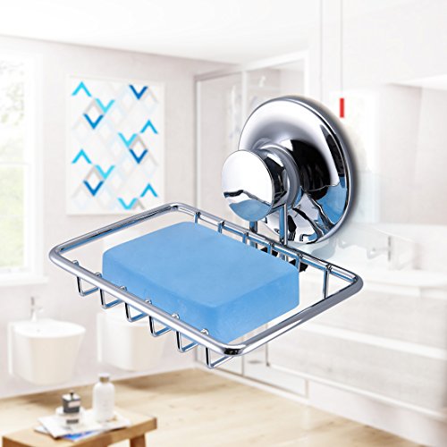 Soap Dish holder Super Powerful Vacuum Suction Sponge Holder, Anti Rust 4-Layered Chromed Strong Stainless Steel, Wall Mounted, for Shower Bathroom & Kitchen