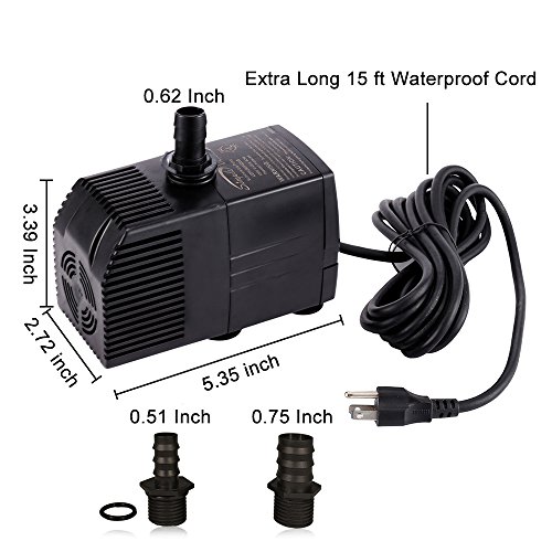 - VERSATILE - Circulate and aerate the water, making it more attractive to your fish or turtles. This submersible pump is perfect for aquarium, fountains, spout and hydroponic systems