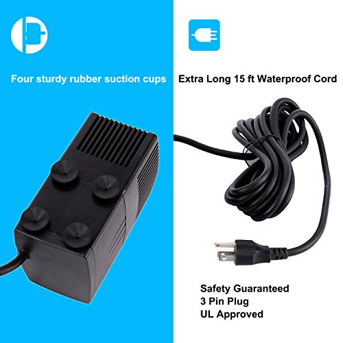 - SAFE & EASY - Safe for fish with no exposed copper. Easy to clean with no tools required to disassemble and clean filter/impeller. Our Electric Cord is waterproof, 18# gauge copper wire, molded plug with ground, heavy duty flexible vinyl jacket, resists oil/grease/moisture, abrasion resistant and very good flexibility at all temperatures
