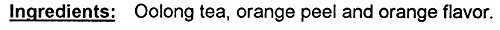 -. Feature : Delicious flavored/scented/blended oolong tea! / Oolong tea, orange peel, orange flavor. / Good morning or early afternoon. / Moderate caffeine / Being in the World®: Mahamosa donates 50% of after-tax net profits to charity!