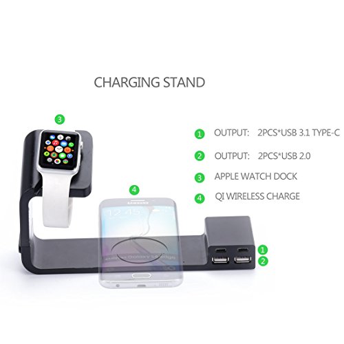 A12 Multifunctional Wireless Charging Stand with USB2.0/USB Type C Ports + Apple Watch Dock