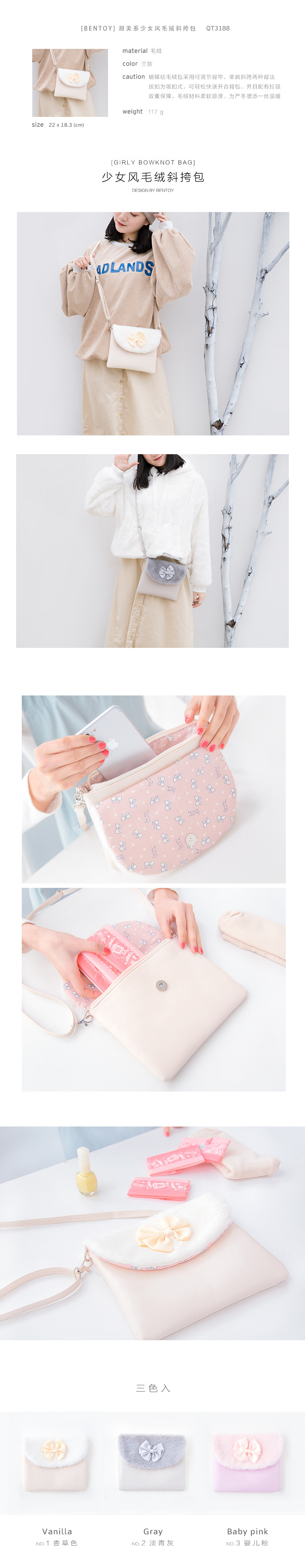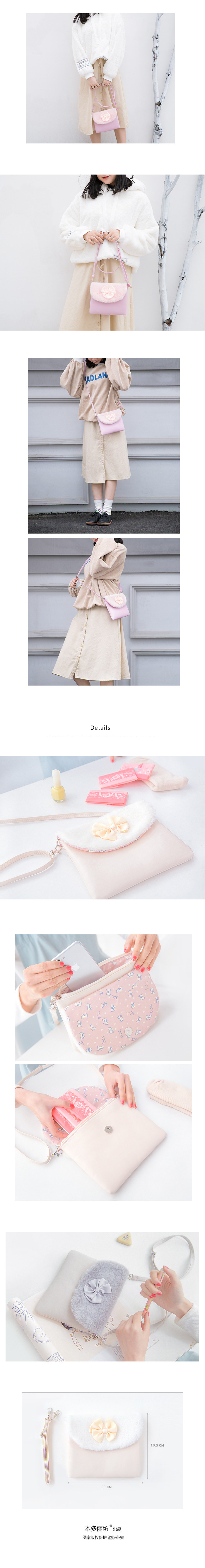 Bentoyぬいぐるみ弓メッセンジャーバッグガールフリップバッグショルダーバッグ原宿風かわいい斜めバッグ