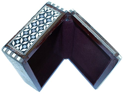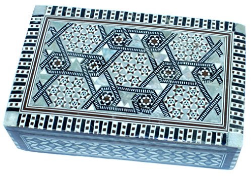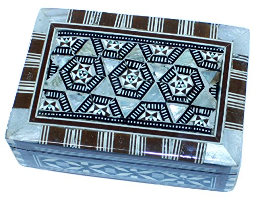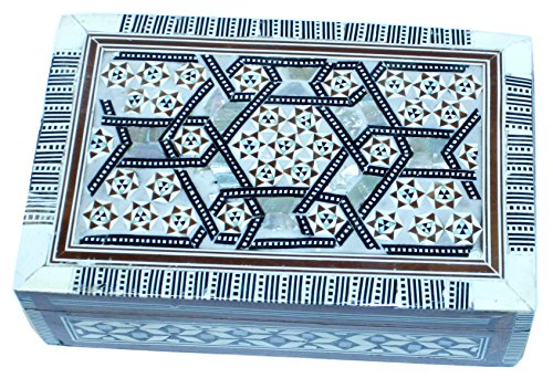-. Binding : Kitchen -. Brand : Holy Land Market -. Color : Brown -. Feature : Wooden boxes with mother of pearls inlays made in Bethlehem the Holy Land. / Top quality and comes in various shapes and sizes. / Great details and work by hand / Note please that decorations filling or inlay of box vary from one box to another. See variations pictures show in the listing. -. IsAutographed : 0 -. Label : Holy Land Market -. Manufacturer : Holy Land Market -. Model : RectMOPBox -. MPN : RectMOPBox -. PackageQuantity : 1 -. PartNumber : RectMOPBox -. ProductGroup : Home -. ProductTypeName : HOME -. Publisher : Holy Land Market -. Size : 5 x 3 x 1.4 Inches -. Studio : Holy Land Market -. Title : Decorative box - wooden inlaid with Mother of Pearls decorations - rectangular - by Holy Land Market