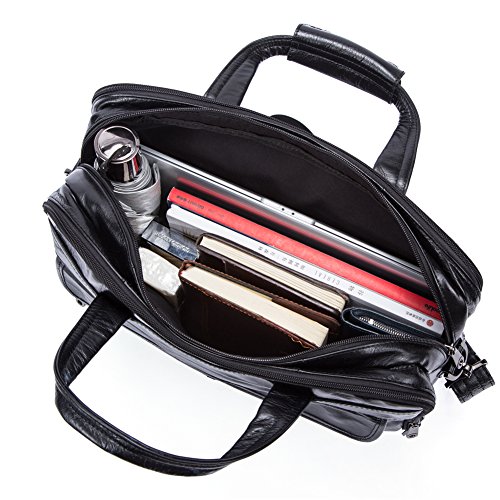 This is Genda 2Archer Vintage Look Leather 14" Laptop Briefcase Messenger Tote Bag. Please make sure the size of this item is suitable for you before placing the order. Also please note that the color of the actual item may be slightly different from the photos due to lighting and other factors. Product Specification: Color: Black/coffee Size: 39cm(length)*10cm(width)*31cm(height) / 15.3*3.9*12.2 inches Material: 100% genuine leather Gender: men or teen boys Zipper closure for easy access, adjustable detachable shoulder strap and top handle, it will be a shoulder /crossbody/tote briefcase Can hold your 14-inch laptop, A4 books, wallet, phone,pens or your clothes, etc Can be used in different occasion: business, office, meeting, shopping, travelling, school, holiday more Package Content: 1PC * Briefcase 0