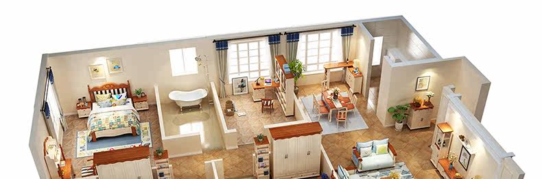 LSN4A-3D家装板块-床+LSN2R圆餐桌+LSN1L茶几
