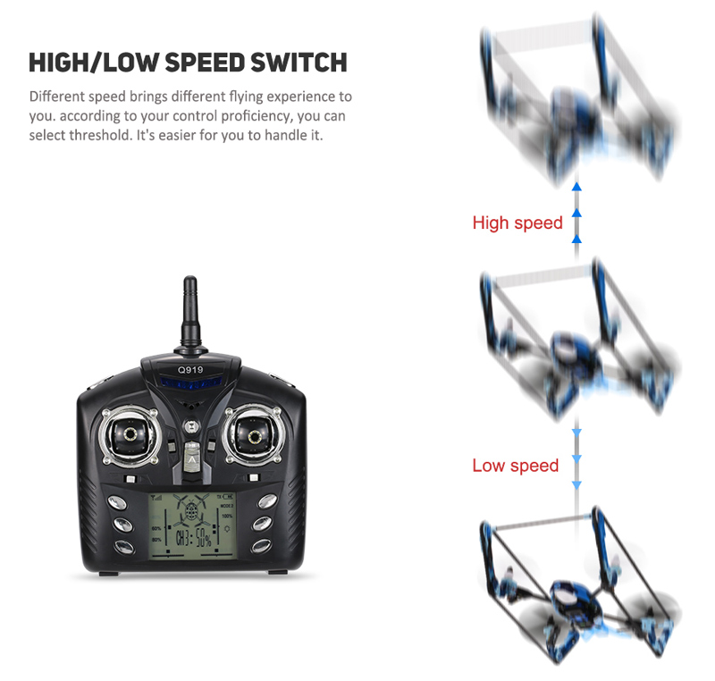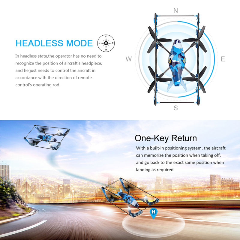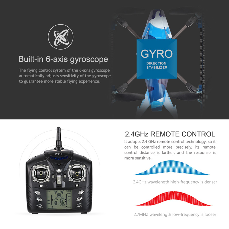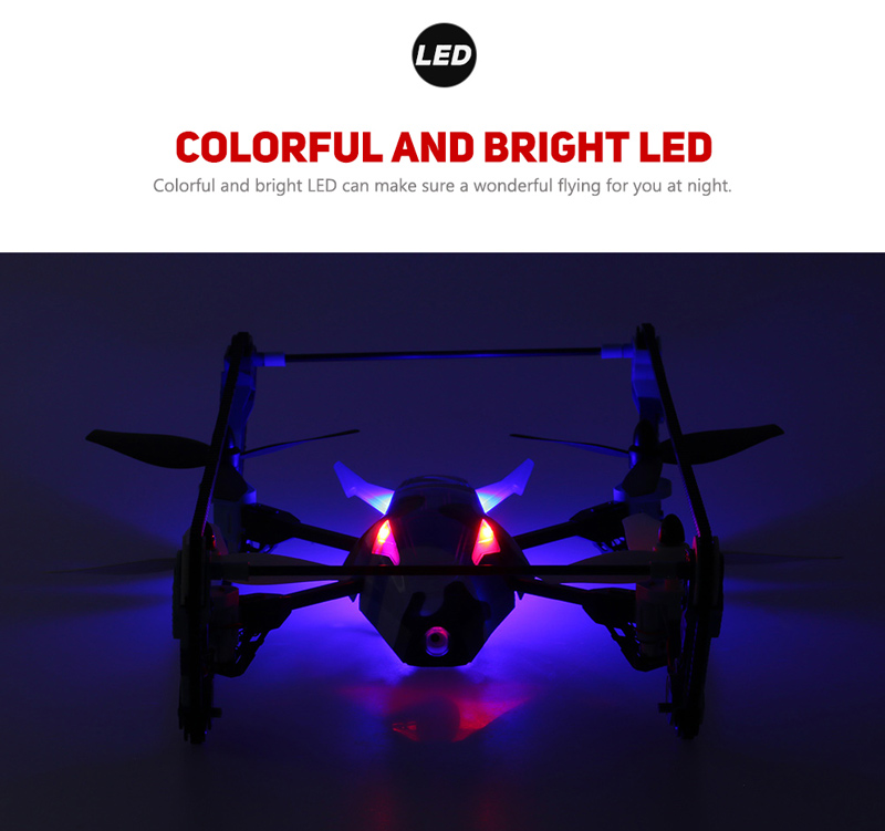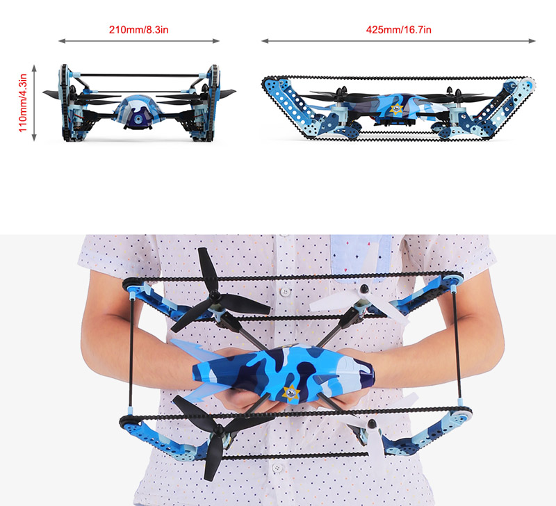 Have you ever wanted to fly a tank quadcopter? Nothing more easy, the Wltoys Q919B drone is exactly the beginner drone that you need. Emulational tank track and attractive camouflage layer design will give you a deep impression. It can not only run on the ground but also fly in the sky. A wonderful experience! What are you waiting for?