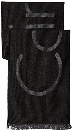 Calvin Klein Men's Woven Twill Logo Scarf, black, One Size