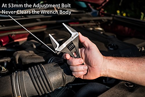 ULTRA THIN LOW PROFILE DESIGN: Our 53mm stubby adjustable wrench features a super low profile design to access tight spaces with ease. The ultra wide mouth is designed to open up to 53mm wide to access larger nuts and bolts in hard to reach places. This tool can be used for home improvement projects, automotive work, plumbing and for any other projects that require a low profile wrench to tackle your toughest jobs!