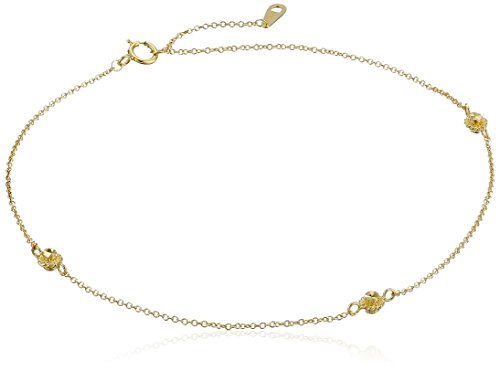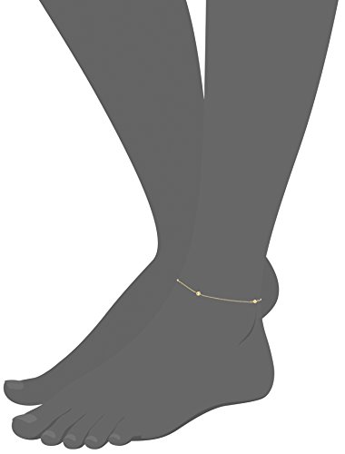 -. Title : 14k Yellow Gold Diamond Cut Station Anklet, 9" + 1" Extender