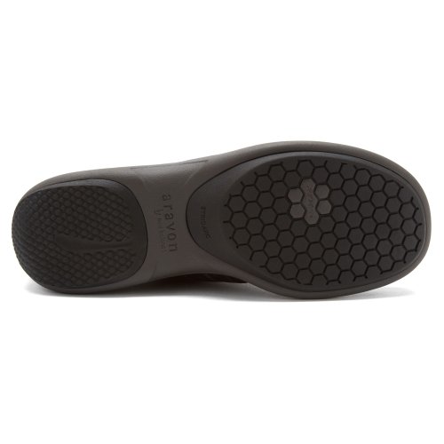 Studio : Aravon Publisher : Aravon Binding : Apparel Product Description Enjoy a plush, supported ride in the Aravon REVsmart sneaker, a European-inspired walking shoe that's perfect for travel or around-town wear. This women's casual oxford is made from premium burnished leather and subtly accented with perforations and stitching details; a five-eye lace ensures a perfect fit. Removable to accommodate orthotics, the insole features both PrimaluxTM and ABZORB cushioning, and includes metatarsal and arch support to energize your stride; a lightweight REVlite foam midsole keeps a spring in your step. The Aravon REVsmart walking sneaker is finished with a rocker-bottom rubber sole to deliver you to your destination in stable design. 0