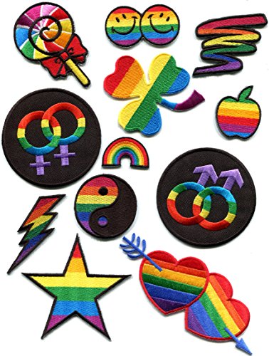 Lot of 12 gay lesbian pride rainbow disco retro boho LGBT embroidered appliques iron-on patches new