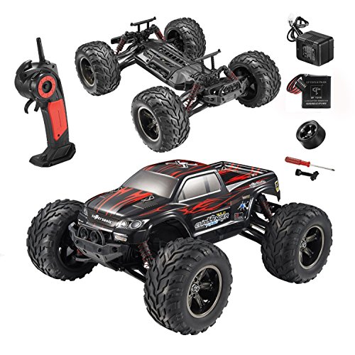 -. Feature : Powerful GP Brush 390 motor-largest in class / 33+ MPH-out of the box with Included Battery / Realistic all-terrain tires with foam inserts / S-Truck suspension technology for superior handling and control / Li-ion 7.4v 800mAh & Charger Included