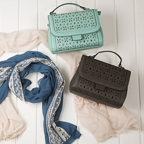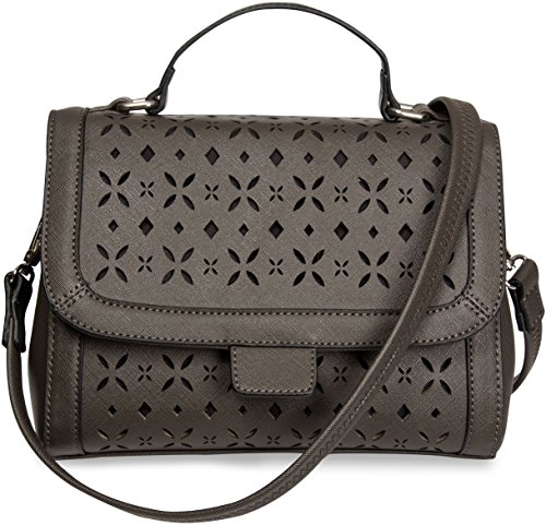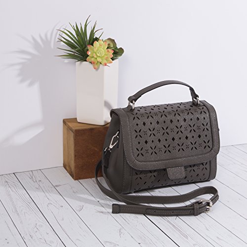 H2Z Laser Cut Handbags - Charcoal Gray Purse with Light Pink Interior Over the Shoulder Mini Messenger