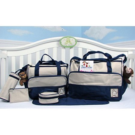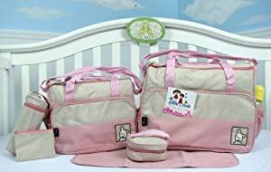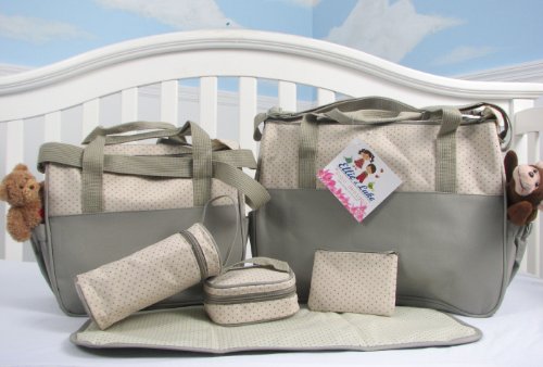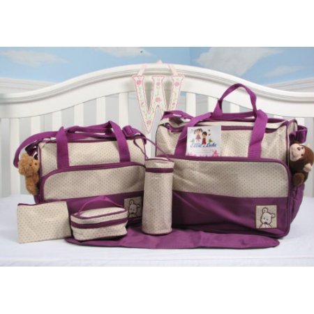This Great 8 pieces Fashion diaper bag set for stylish Mom. Made of 100% Nylon, easy to wipe clean. 1. Extra roomy main compartment with multiple pockets ,Reliable zip-top closure with carrying strap, 2. Mid-Size Tote bag with zipper closure and shoulder strap for busy mom on the go. 3. Small Accessories case with zip closure for mom on the go. 4. Matching Padded Changing Station. 5. Insulated zippered Bottle bag, fits Most size bottle. 6. A pair of Grips strollers attachments. 7. A small zippered wipe case with Handle for dry or wet item. 8.SoHo Diaper Bag Insert Organizer;Ideal for storage baby diapers, toys, water bottles, snack, small towels, etc. * Please All items in the insert organizer are not included, they are for picture purpose only *Feature