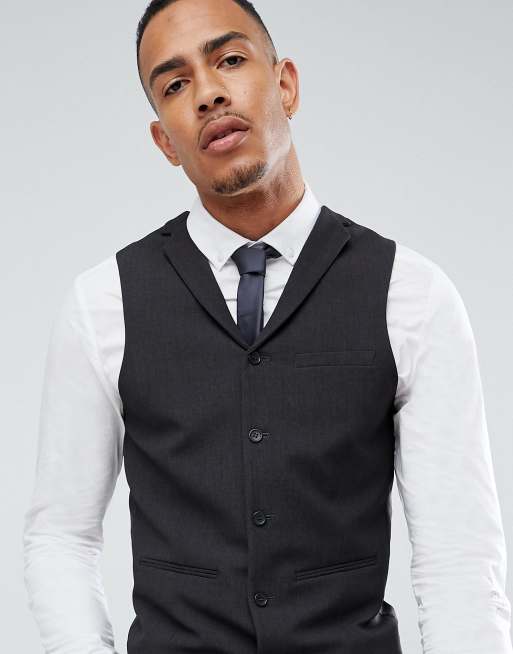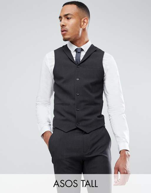 ASOS TALL Super Skinny Fit Suit Vest In Charcoal
