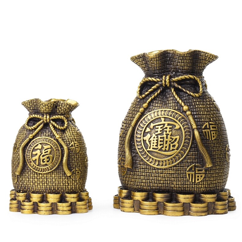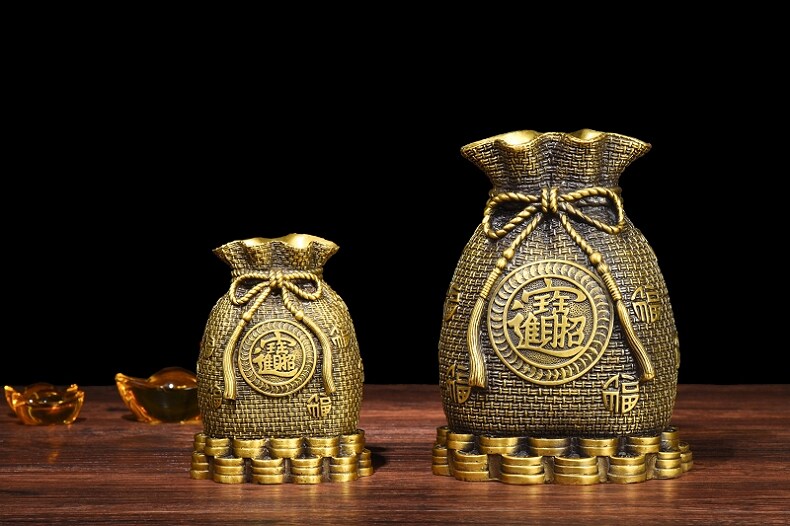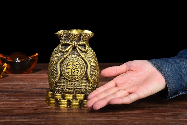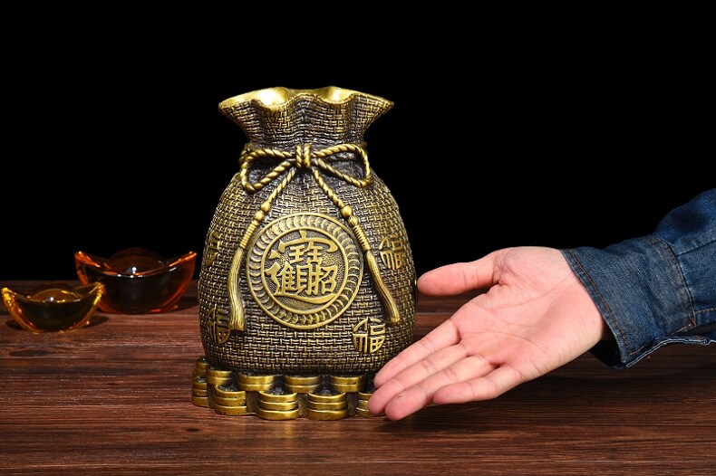 百纳源 纯铜存钱罐摆件 招财福袋家居风水装饰品客厅电视柜工艺品