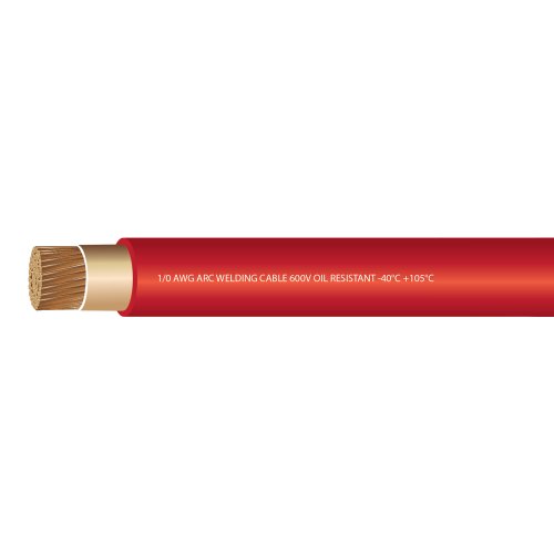 1/0 Gauge Premium Extra Flexible Welding Cable 600 VOLT - RED 20 FEET- EWCS Spec - Made in the USA!