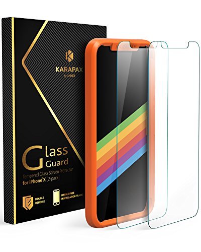 What You Get: 2 KARAPAX GlassGuard Screen Protectors for iPhone X, 2 Microfiber Cloths, 2 Alcohol Wipes, 2 Dust Removal Stickers, Squeeze Card, Alignment Frame, Installation Guide, Happy Card, our worry-free 18 month warranty and friendly customer service.