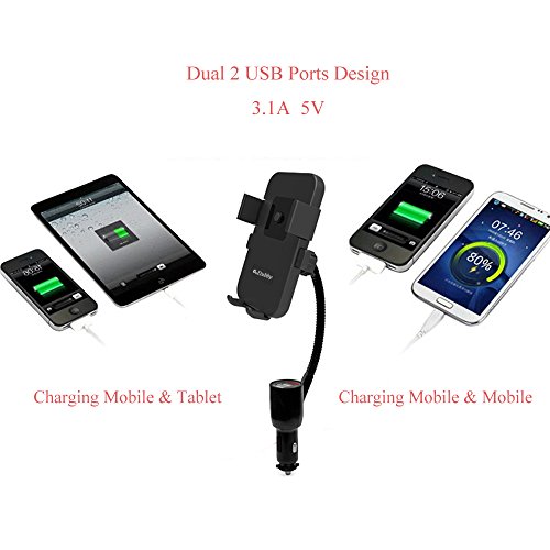 Dual 2 USB ports 3.1A design, can plug 2 usb car charger into this mount and charge your devices. And it's made with the highest quality ABS plastic.
