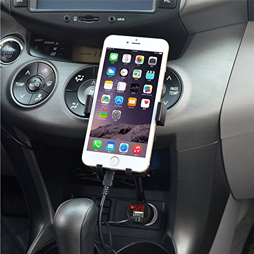 Universal car charger mount holder designed for iPhone 6, 6 Plus, 5S, Galaxy S6, S6 Edge, S5 and other Smartphones (Width 2.3-3.2 inches).