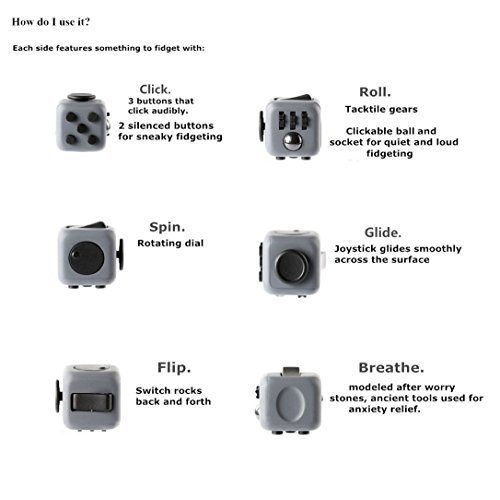 Ratoop Fidget Cube Relieves Stress and Anxiety Attention Toy for Work/Class/Home, Black/Gray