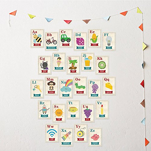 -. Title : Nursery Wall Decor, ABC Spanish Español Wall Cards, Our World Themed, Kid's Wall Art, Nursery Decor, Kid's Room Decor, Gender Neutral Nursery Decor